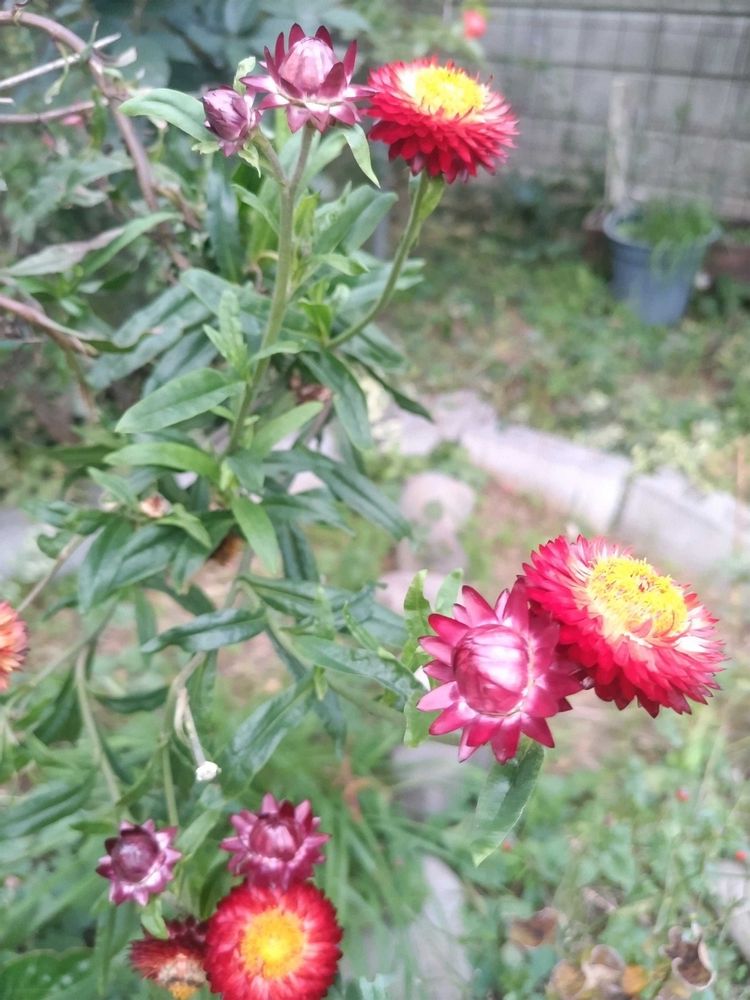 ムギワラギクは春からずうっと咲いて丈夫です。更に蕾も出来て咲こうとしている