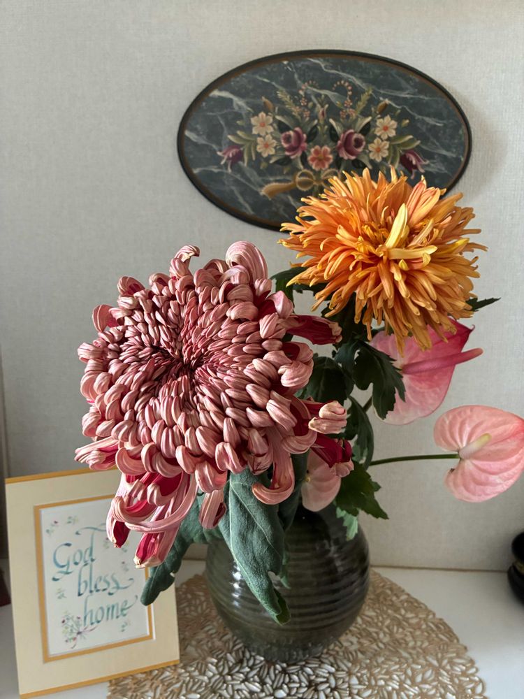豪華な菊(マム)と一緒に、トールペイントとカリグラフィーの素敵な作品も見せて頂き、目の保養になりました☺️💕