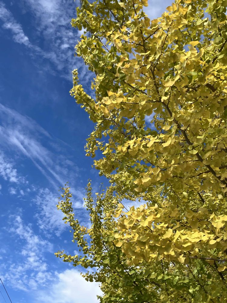 秋の空にキラキラと輝くように映える銀杏が、素敵です😊❣️