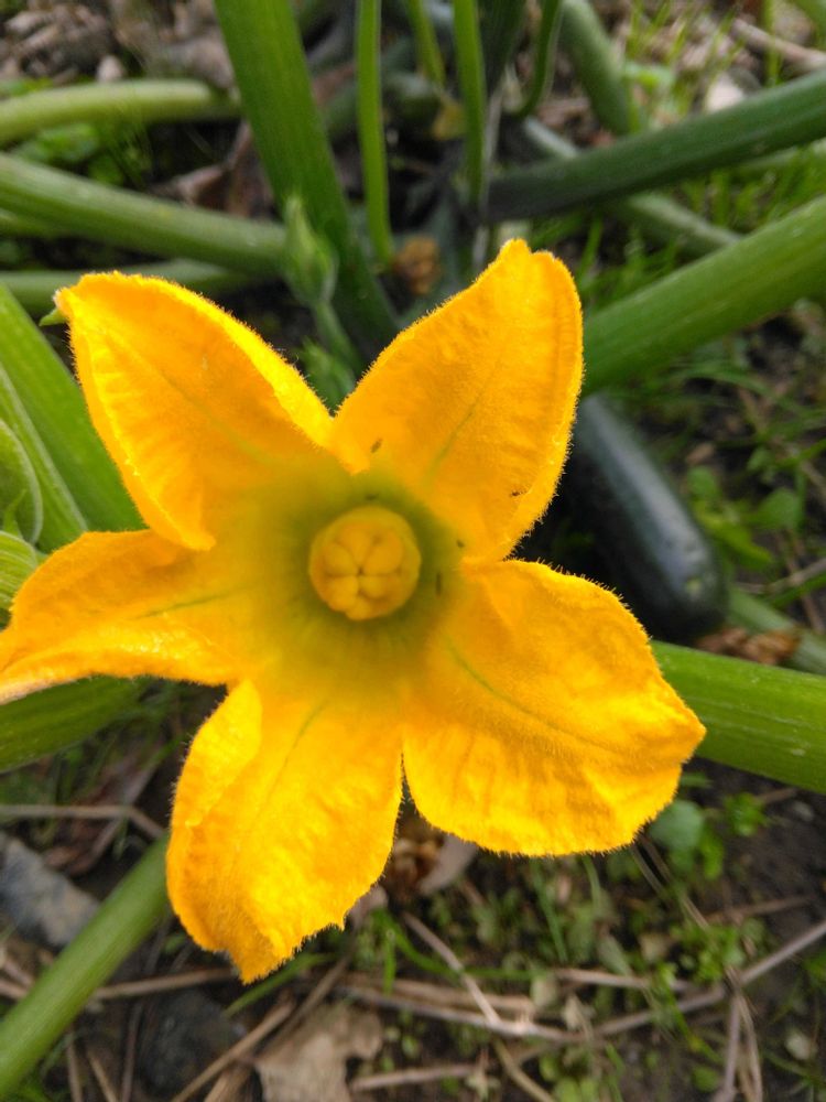 ズッキーニの雌花、まだ頑張ってるけどもうそろそろ片づけようかな…………