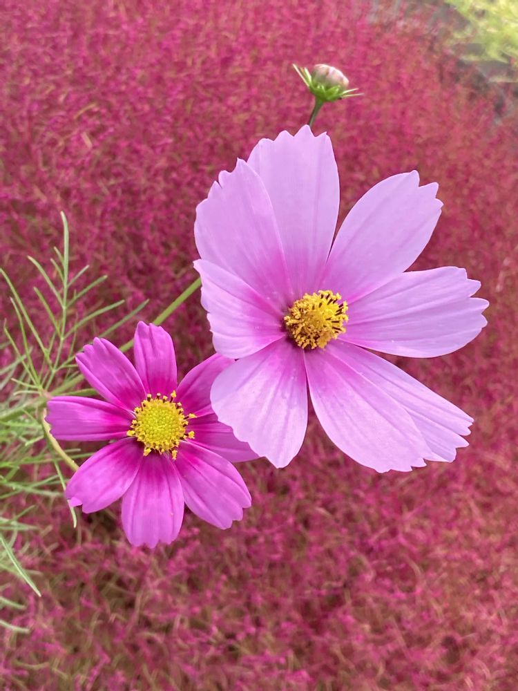 ③コキアからピンクのコスモスがひょっこりはん🤭
