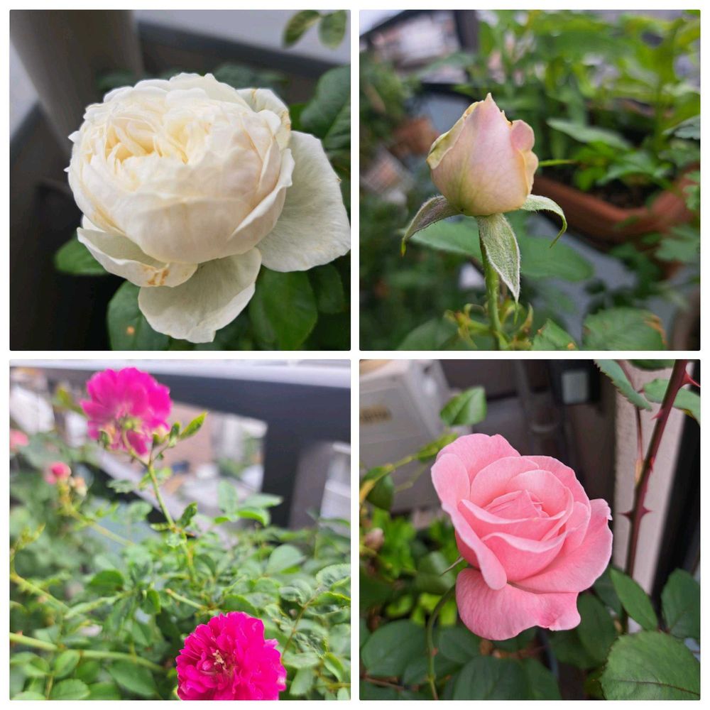連休初日からコロナでダウン。やっと熱が下がり、ベランダのバラで嗅覚を確認!なかなか一斉には咲かないけれど、それでも癒されます