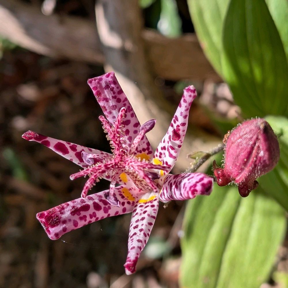 あんなに沢山あったはずの我が家のホトトギスが お盆前の剪定時にみんな刈られてしまったらしく…諦めていたら僅かに生きながらえていました😂