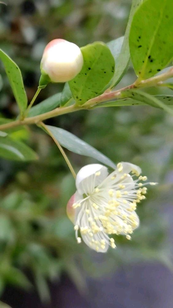 先日のミルトス(銀梅花)がうっすらピンク色も添えて…咲いていました…😯🤍🤍🩷🌿🥰