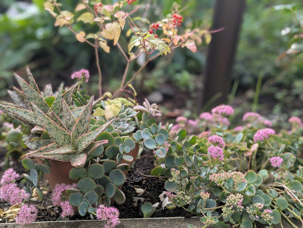 庭のミセバヤ、光がよく当たって岩場みたいに、してみるね🥰