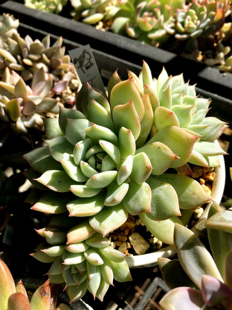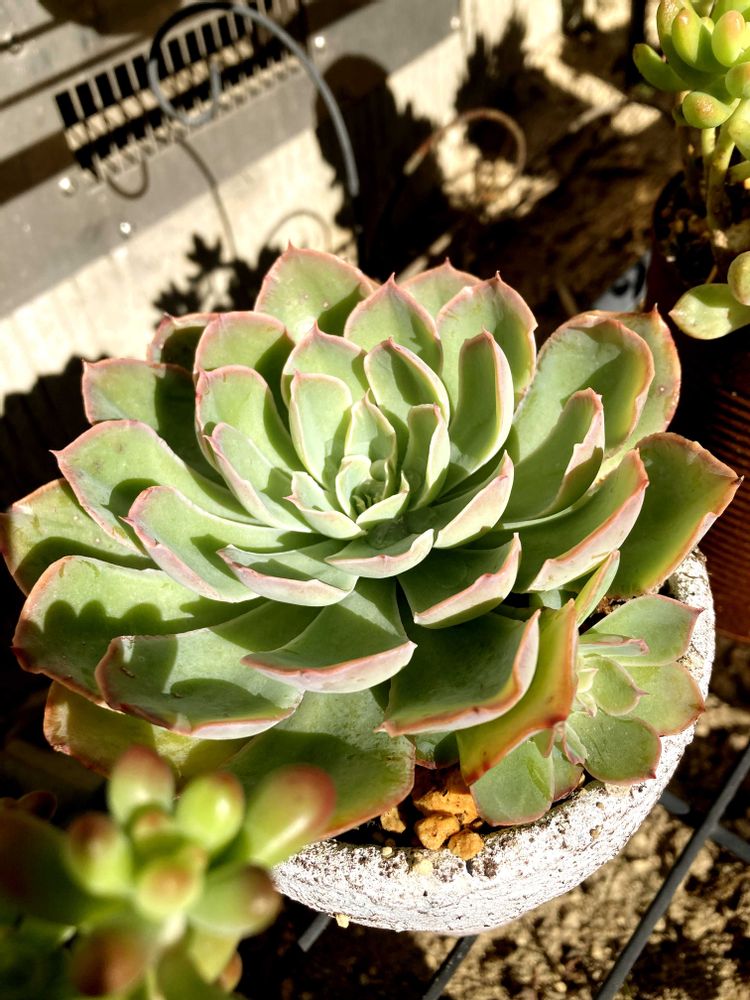 どの多肉が好きって聞いたら以前は虹の玉みたいに赤いのが好きだったけど、この前はエケの白っぽい子ばかり指指してたよ😄