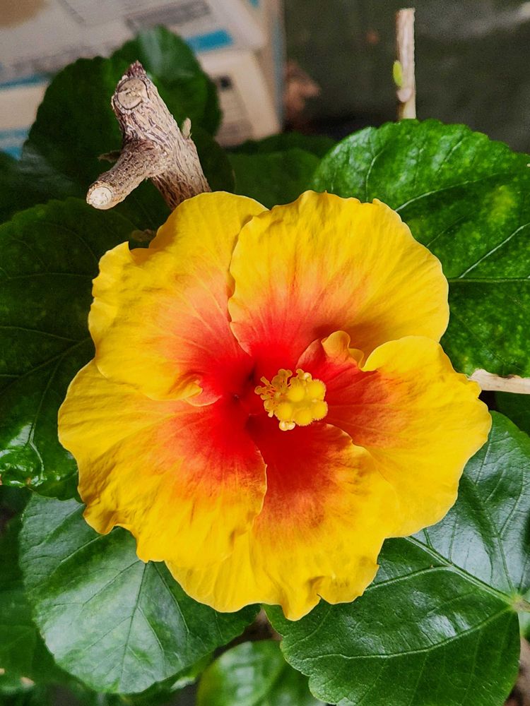優秀なハイビスカス🌺よく咲くね〜👏👏鉢、4個あるけど、どれも咲かない😅一つは、挿し木が、根付いたみたい🌱来年、咲くかな?