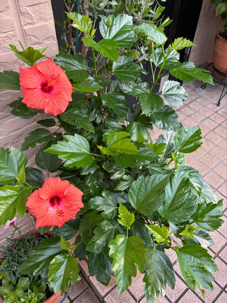 気温が下がり、1日花のハイビスカスが2日目も咲いてます🌺🌺🌺
