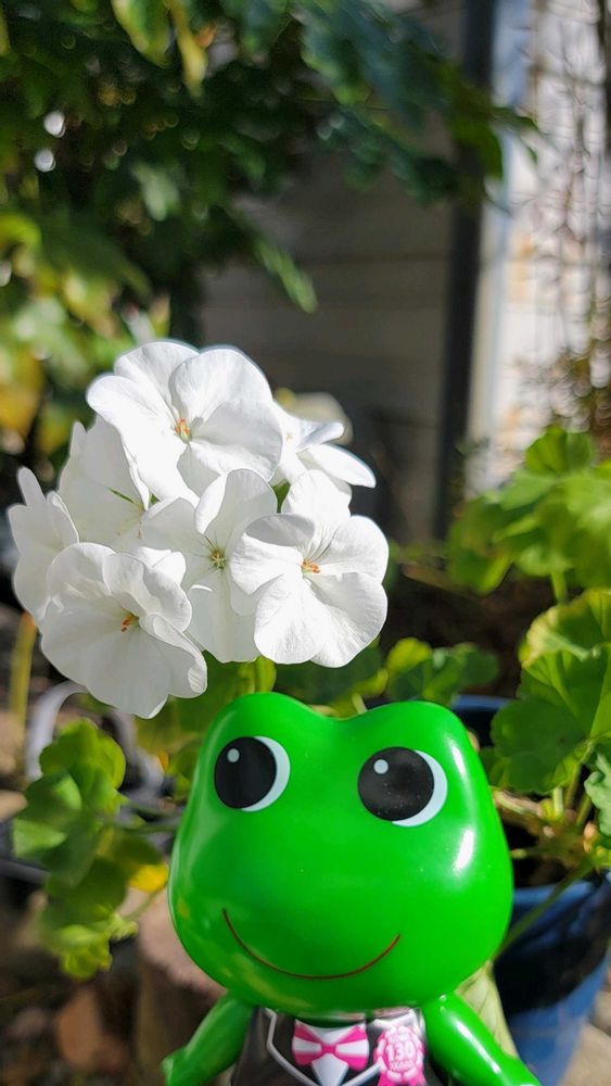 1️⃣今咲いてるゼラニウム🤍と🐸