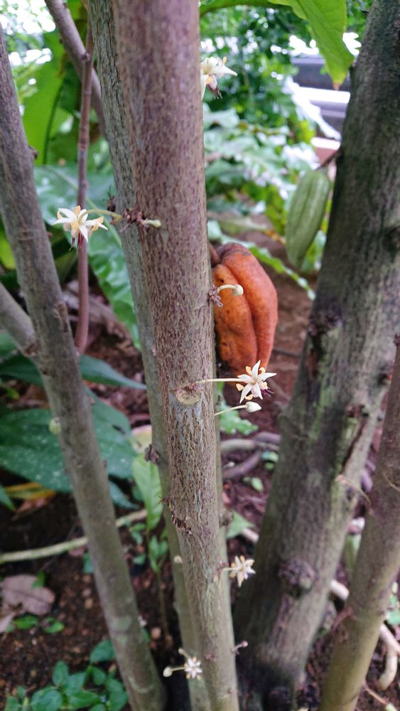 カカオ 花の時からすでに実の状態ですな🍫