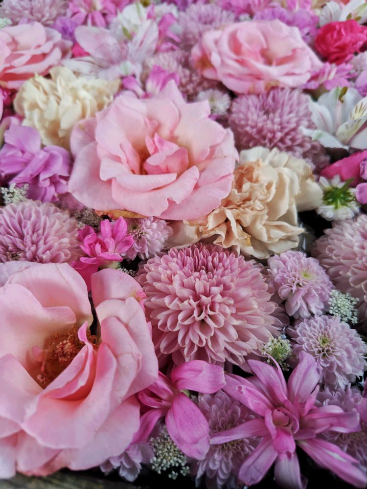 花手水今日も豪華🤩🥰💞〜🙏🏻〜お花屋さんの名前ど忘れ🤦🏻