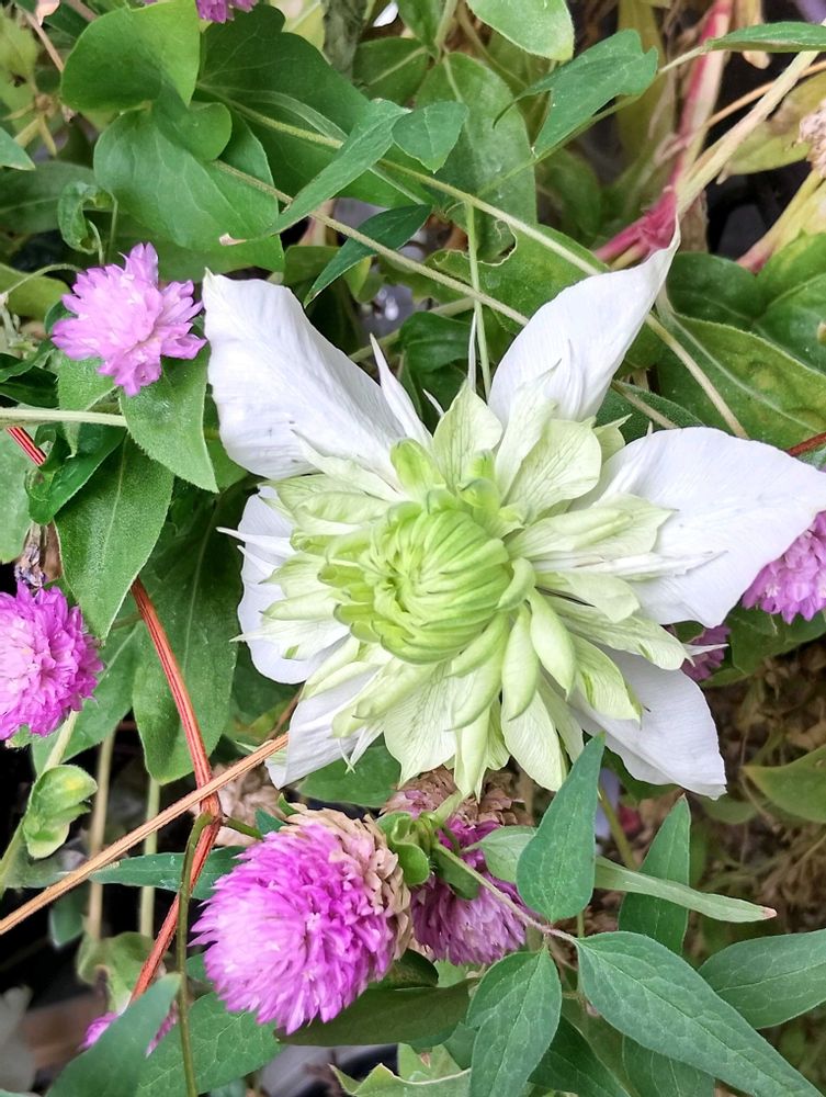 デルフィニウムさんのクレマチス,センニチコウ,クレマチス 白万重(しろまんえ)の投稿画像
