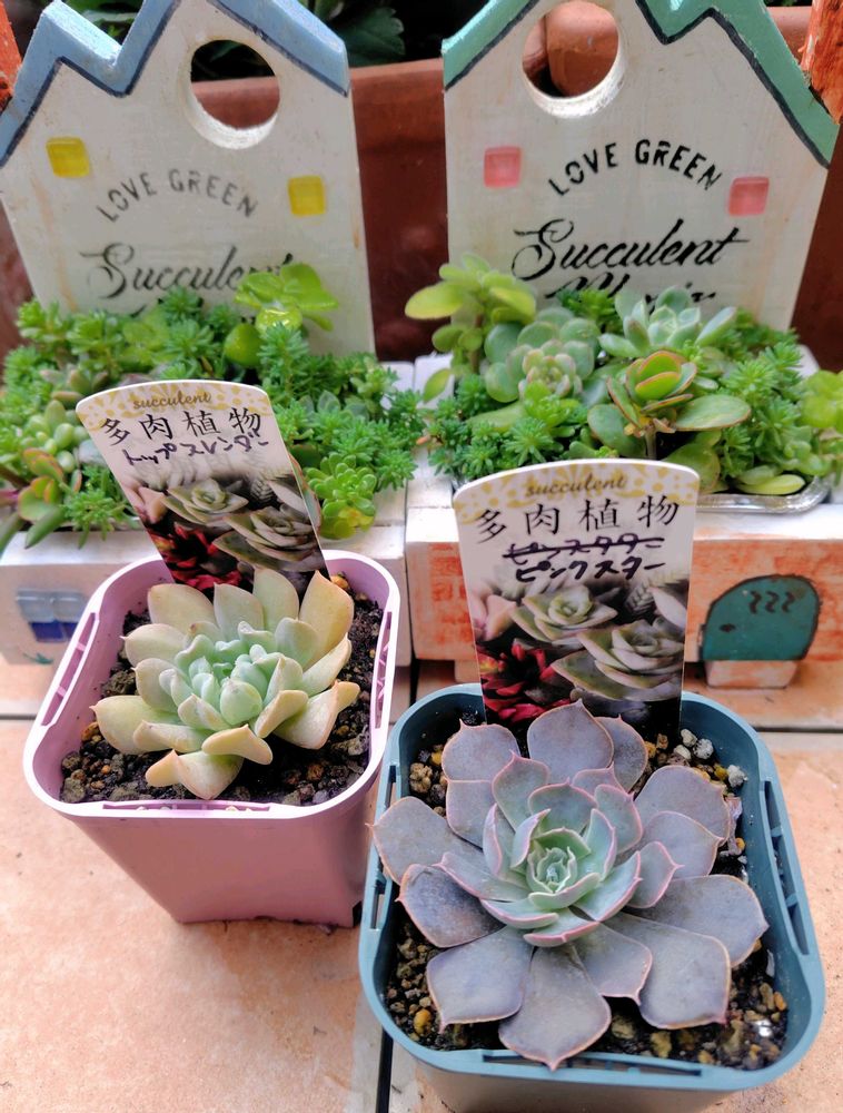 うちん家近くのホムセンにも多肉がたくさん並んだよ。195円の棚もあってアガる〜😲。