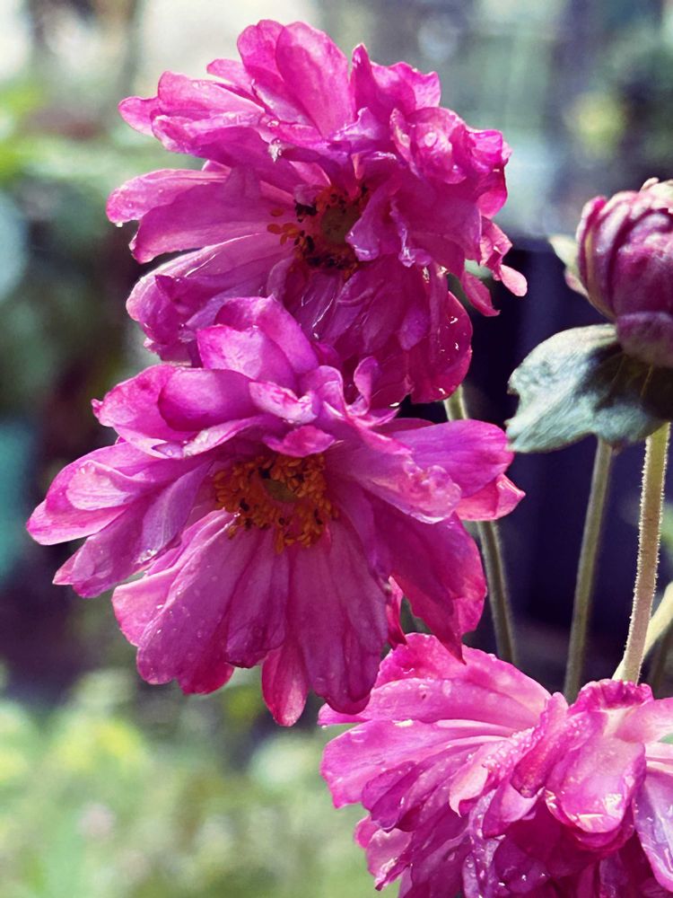 シジュウカラさんの秋明菊 赤花八重,マンションの庭の投稿画像