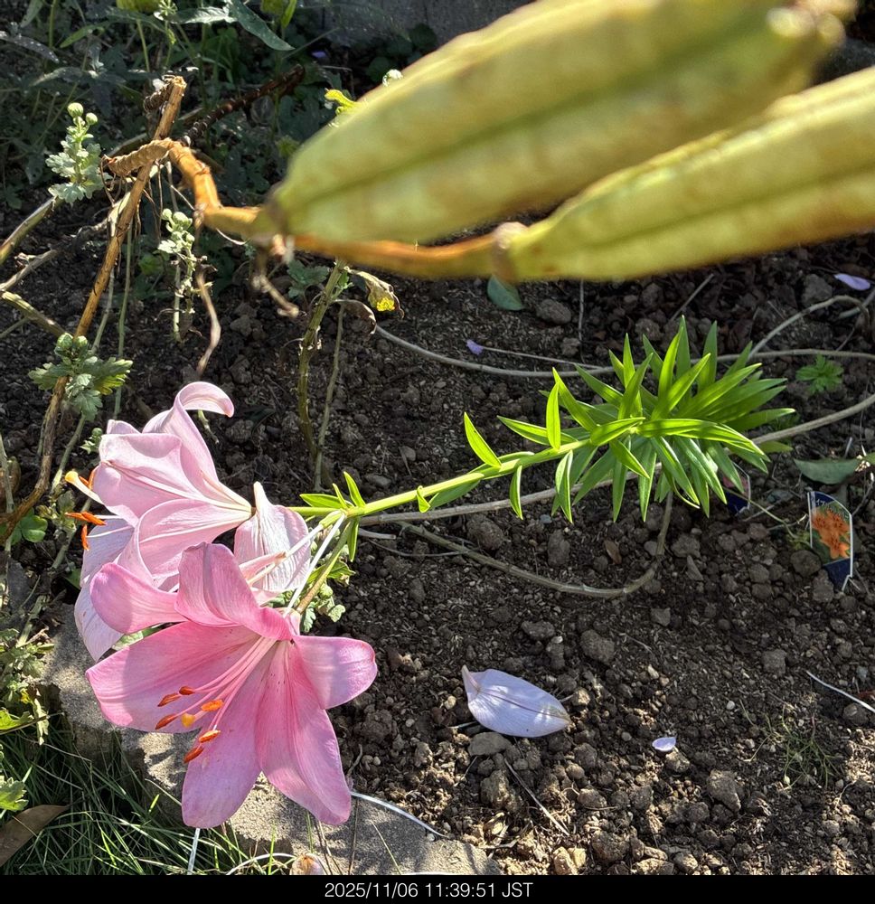 ユリ科ユリ属ユリ(詳細不明)。学名は[Lilium spp.]で、読み方はリーリウム・スペキエースなのです。