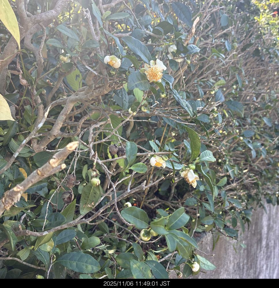 ツバキ科ツバキ属チャノキ。学名は[Camellia sinensis]で、読み方はカメッリア・シネンシスなので……あれ、これ本当にチャノキだっけ? 別の花を間違えて撮影してませんよね?