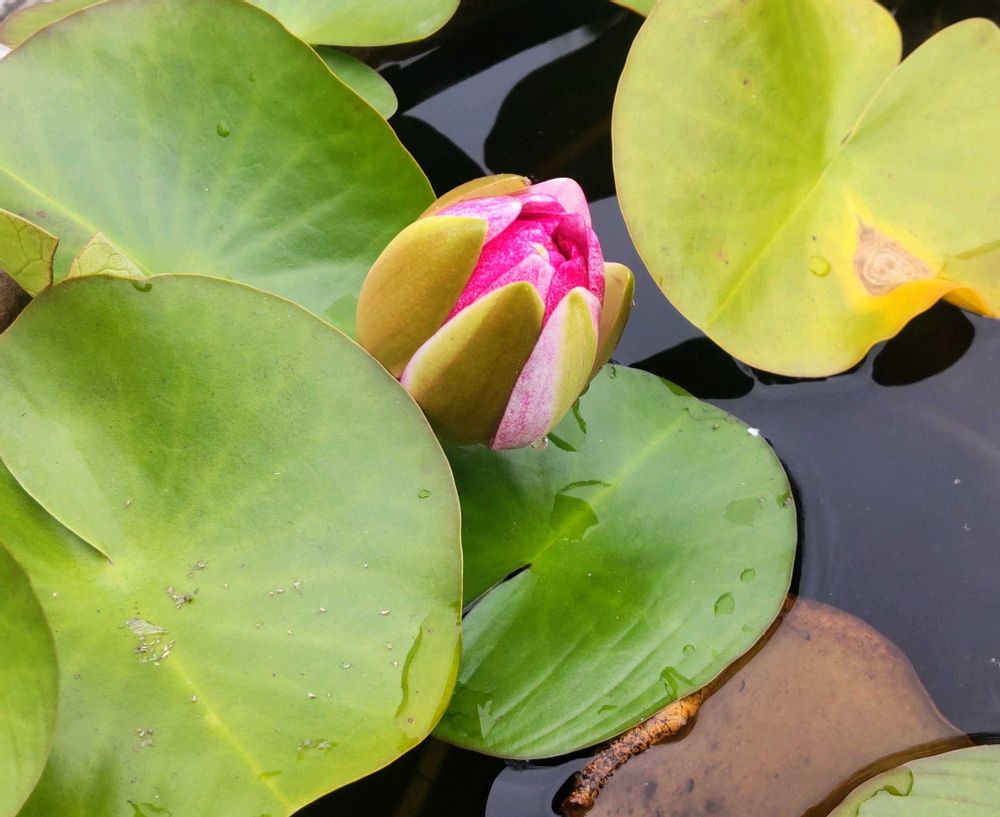 4️⃣ 10月桜の木の下では、スイレンがもうすぐ咲きそうでした🌸