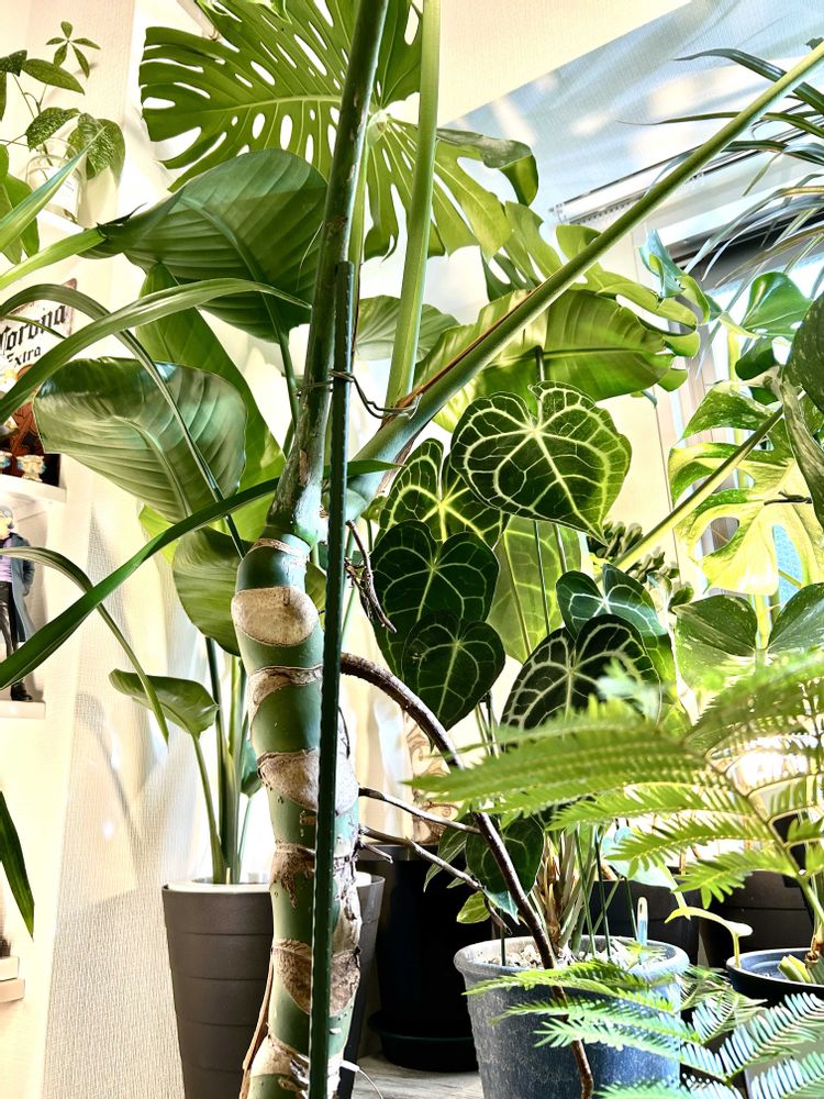 お気に入り😃モンステラの森🌳を少し整理して、オーガスタとセロームホープ、アンスリウム原種クラリネルビウムをよく見えるように配置換えした😊