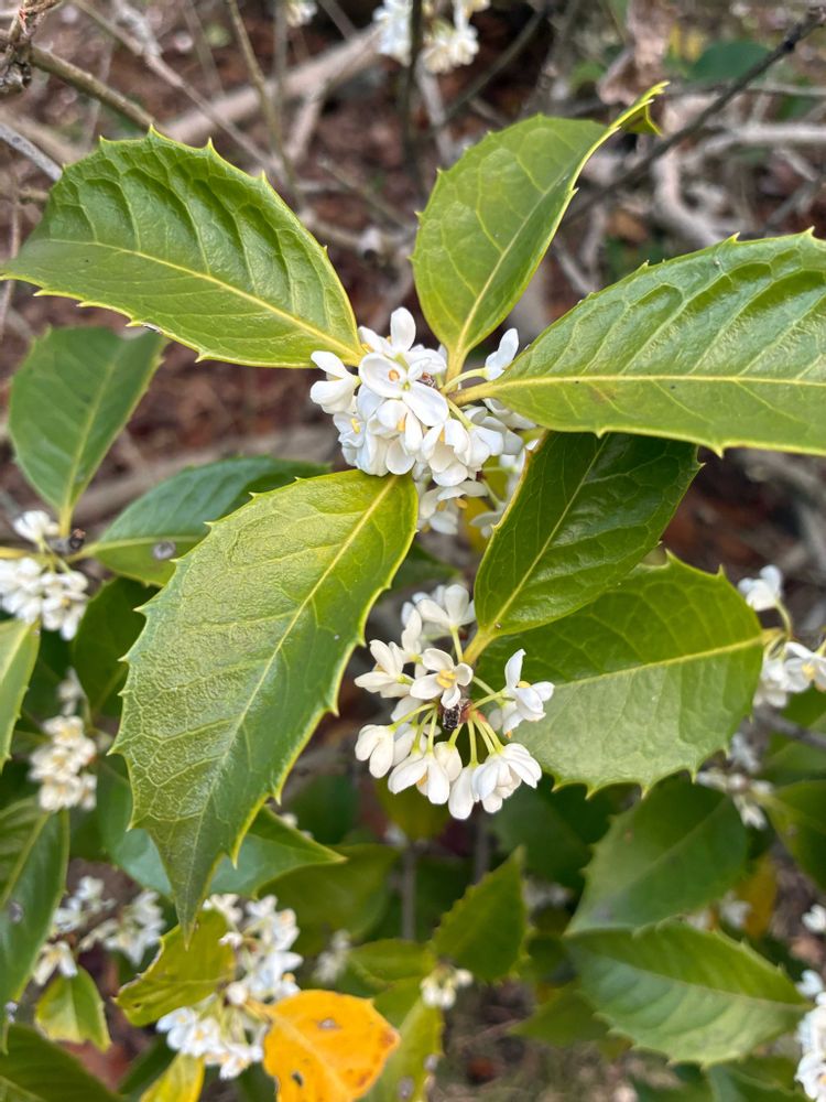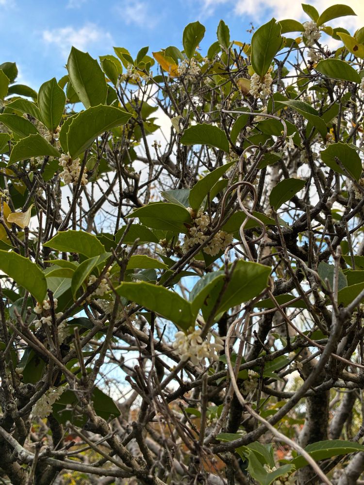 ヒイラギとギンモクセイの中間種「ヒイラギモクセイ」の白いお花をパチリ!📸🌼🌿😄🤗👌