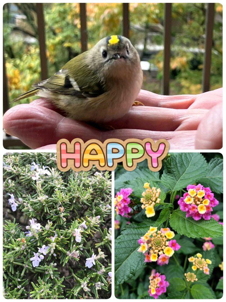 1枚目~今朝ジム友から興奮した様子で送られてきた小鳥のpic😍💘💘💘あまりに可愛いので、許可を取り花友の皆様にもご紹介🥰 この子の名前はキクイタダキ💛菊戴