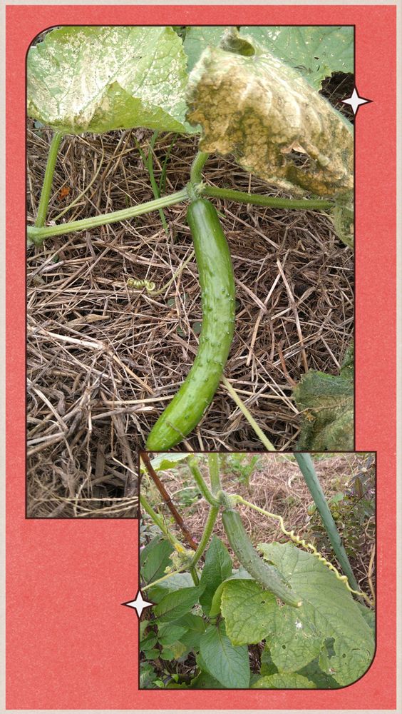 畑ではローゼルが寒さで弱っている中キュウリが頑張ってました