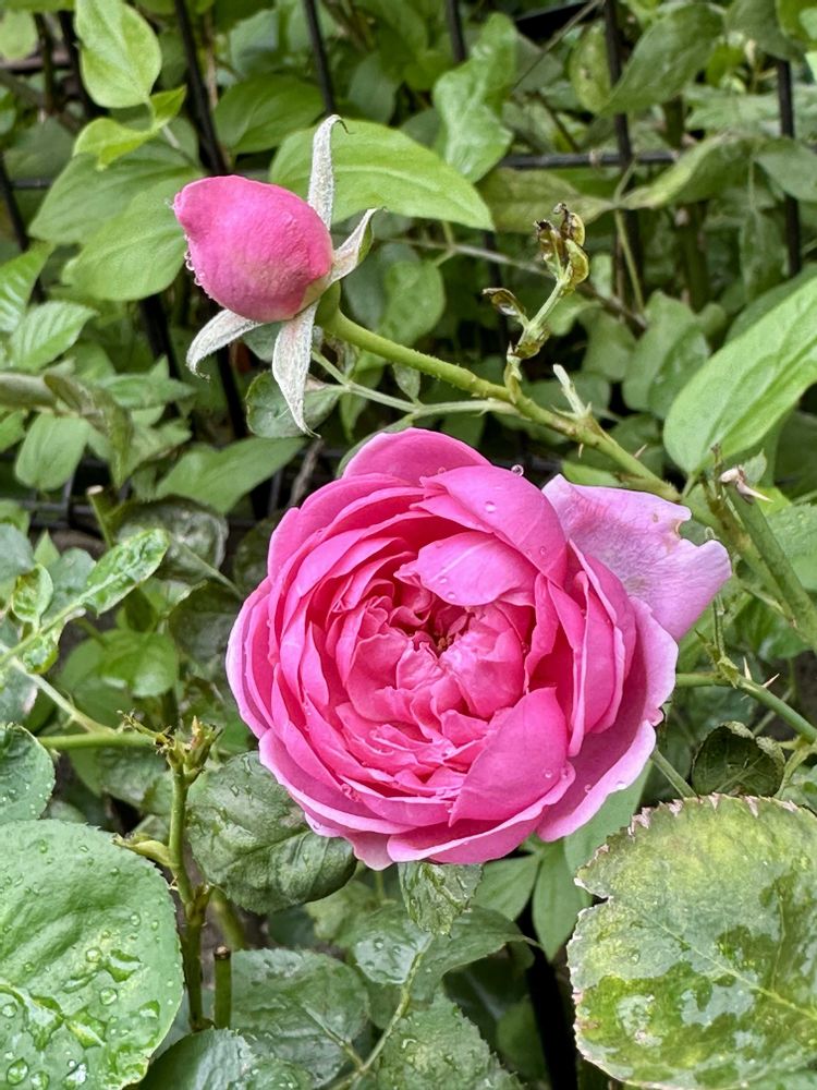 実はそうでもないんですよ💦汚くなってるのは撮らないようにしてます🤭バーネット、木村さんの説明文でアイコンタクトのできるバラって言ってたなぁと思い出して留めつけないで垂らしてみました。