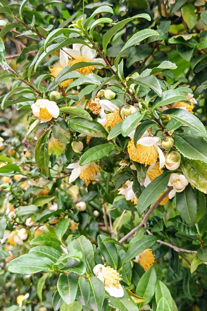 去年も同じ事を書いた気がするけど、お茶の花、これまでに1番花を咲かせたみたい。