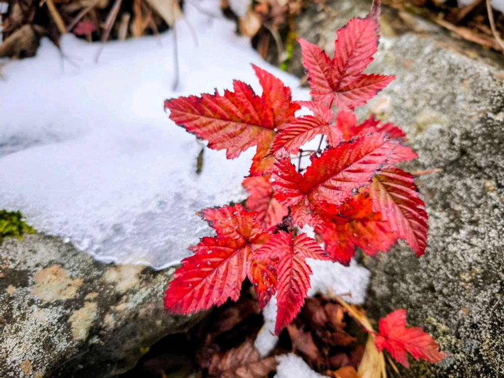 1・2枚目:足元の紅葉🔴・黄葉🟡 ※雪と紅葉・黄葉なんて不思議な組み合わせです🤭