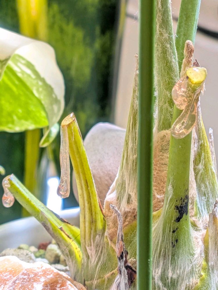 ②③取り込むのに傷んだ葉を切った茎から水飴みたいなのが固まってた😳