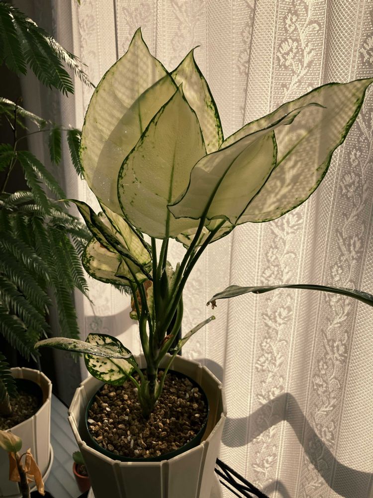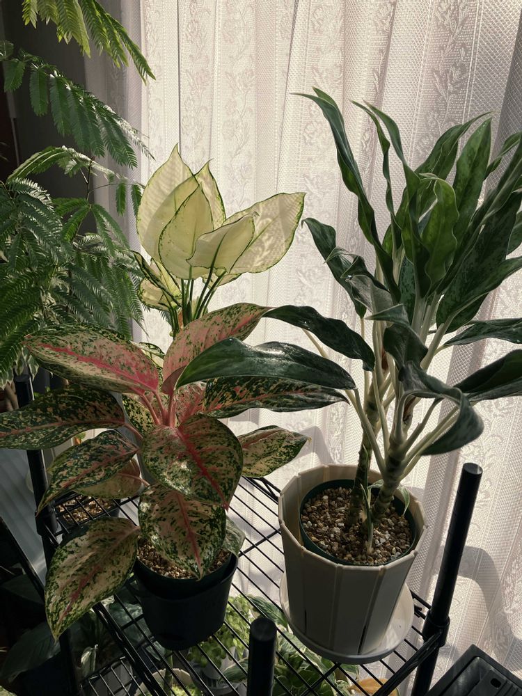 白い子は、アグラオネマホワイトバレンタインですよー🤍運が良いとDAISOにもあったりするお手頃品種だと思うよー👍😁