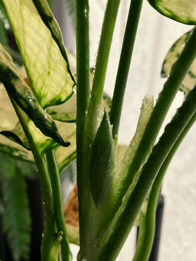 先日のディフェンバキアティキに続いて花芽カットですよ〜😓✂️
