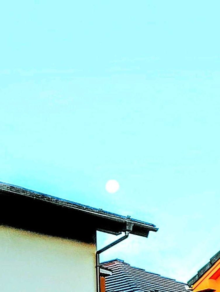 スーパームーン🌕…ずっと空模様が悪く見られませんでしたが、早朝の西の空に白く微かに見えましたので撮ってみました🤭やっぱり月は夜の方が感じるものがありますネ😄