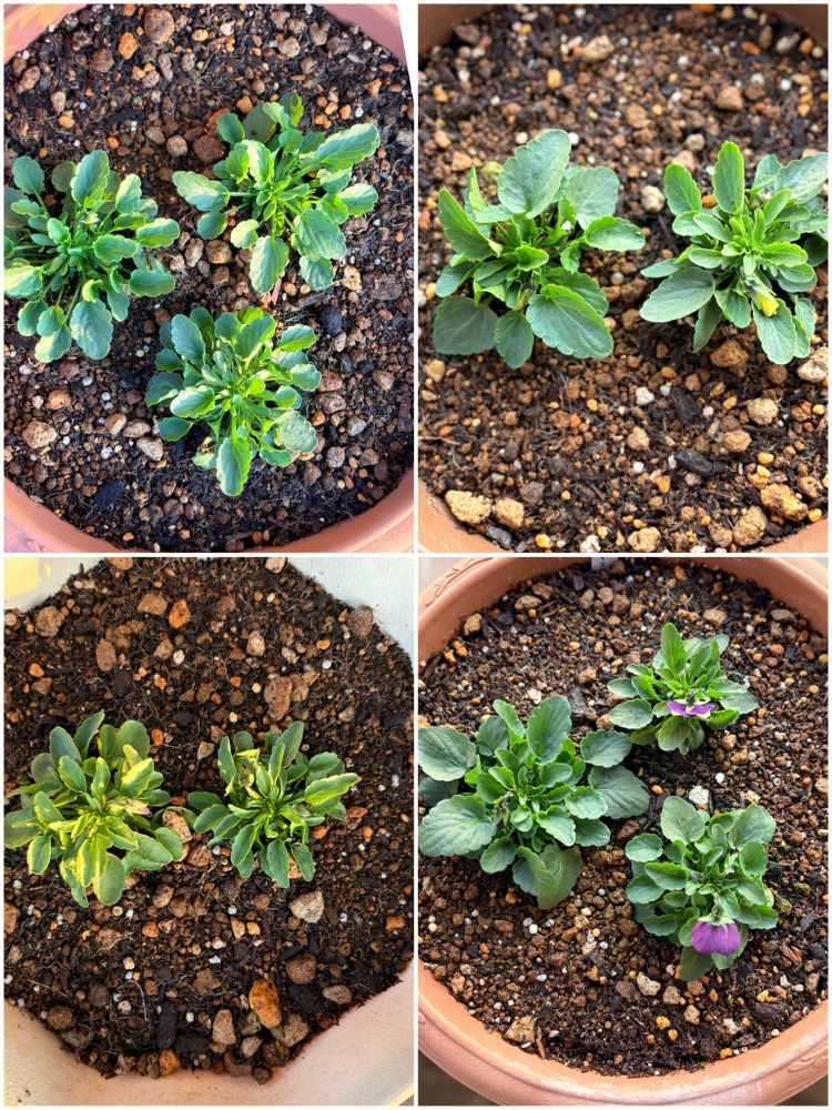数年前の同じ時期の種まきビオラはもう沢山のお花を付け株も充実していました(2枚目)