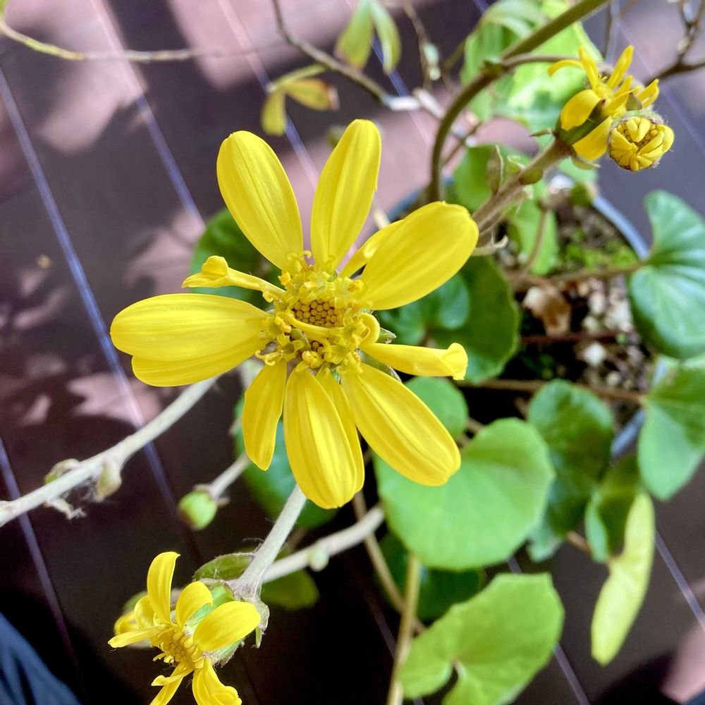 ツワブキ、猫柳、イワヤツデの寄せ植えです。11月にはいってツワブキが咲き始めました。根元にあるゴツゴツしたイワヤツデは来年に備えて葉を落としています。 This is a mixed planting of silverleaf, pussy willow, and iwayatude. As November approaches, the silverleaf has begun to bloom. The rough iwayatude at the base has dropped its leaves in preparation for next year. 🌼
