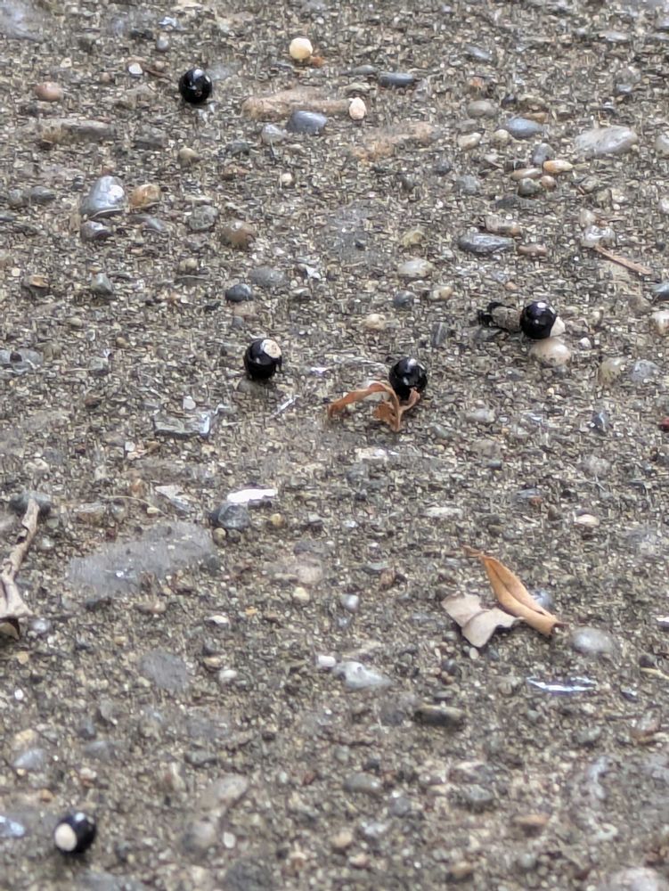 地面(コンクリートの上)にも沢山の黒い種子が落ちています●●●