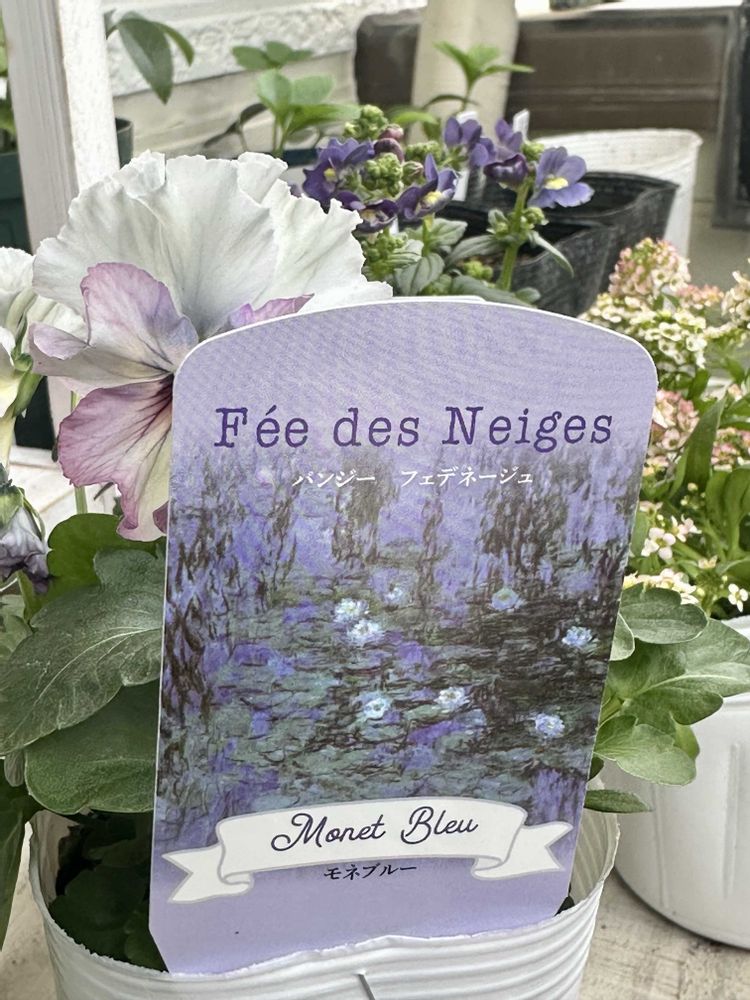 タグが素敵でしょ😍モネブルーって名前も良いよね。確かにモネの睡蓮の絵のような色合いの花ですよね。