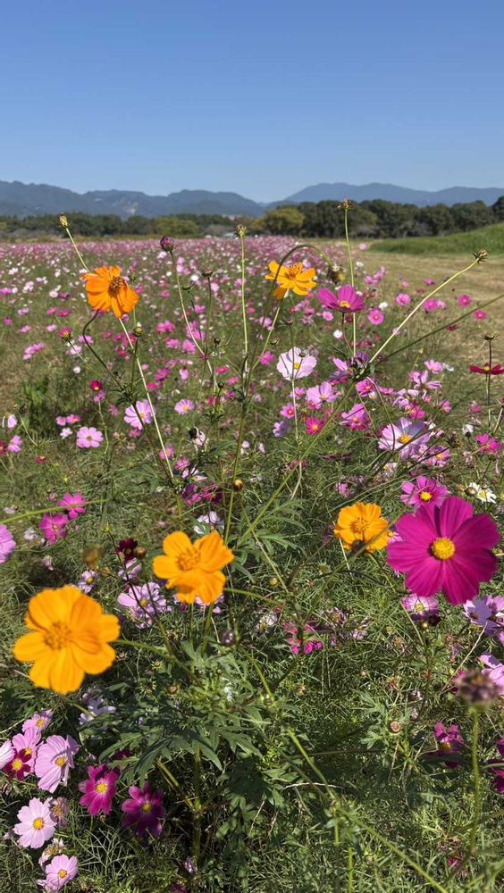 3枚目の山脈バックにコスモスはgoodです😉。種子ができる頃種子持ち帰って庭に蒔きなされ!来年自宅庭でコスモスジャングル楽しめます🤣🤣🤣🐵。