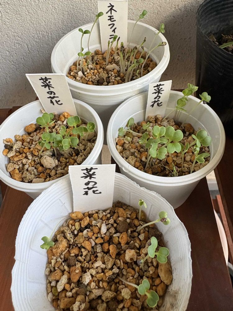 菜の花とネモフィラ(ペニーブラック)の芽が出てきました🌱