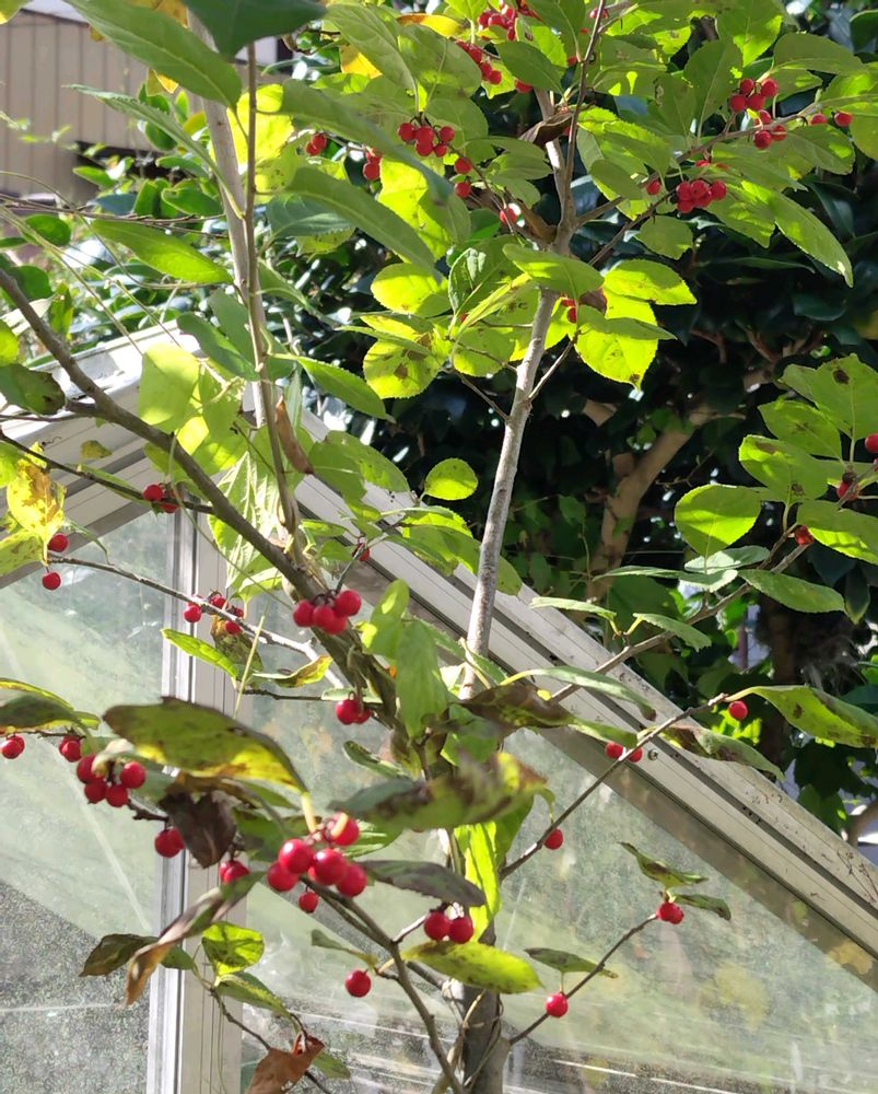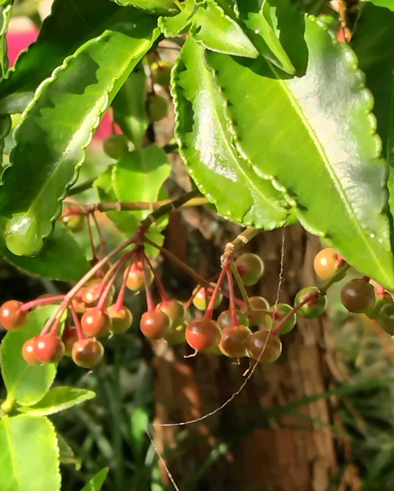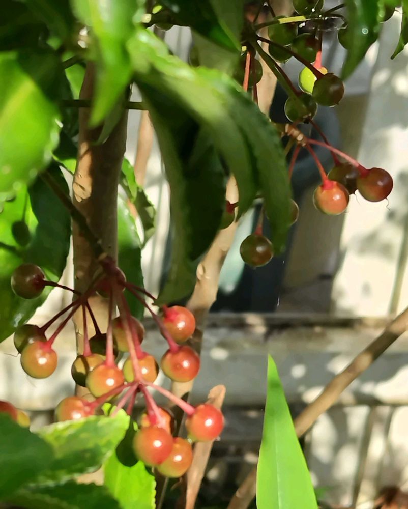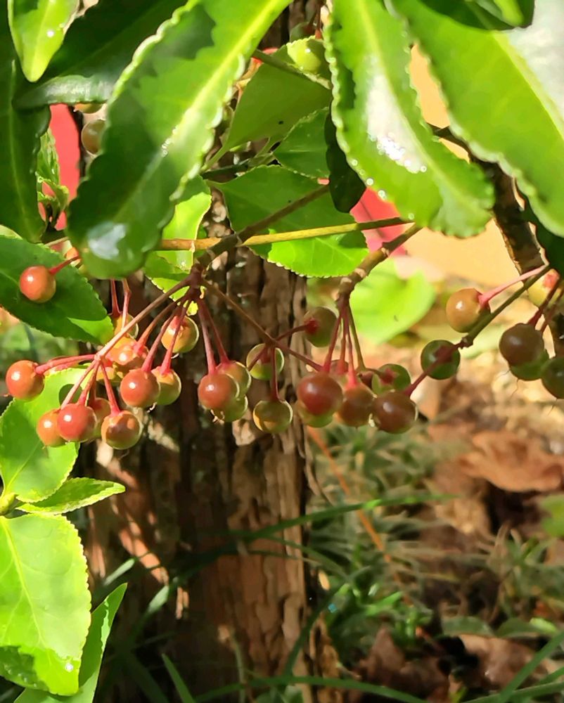 庭の木々の実が赤く色づいています❤️🫒❤️