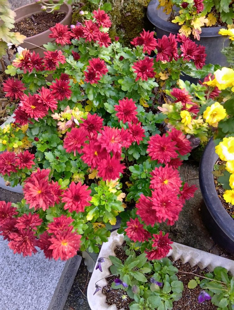 鉢植えで育てた赤と黄色の小菊です 来春は地植えにします 鉢植えは大変ですね ( ´˘`) -ᴗ-) ´˘`) -ᴗ-)ウンウン