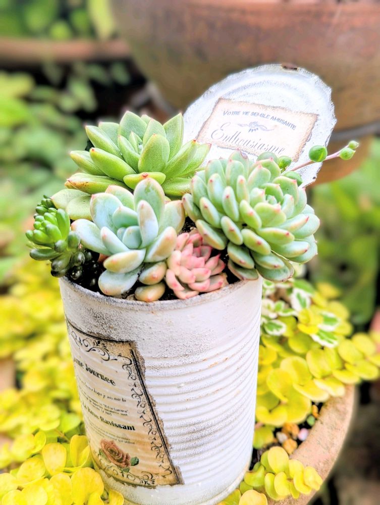 リメ缶に寄せ植え…🌱