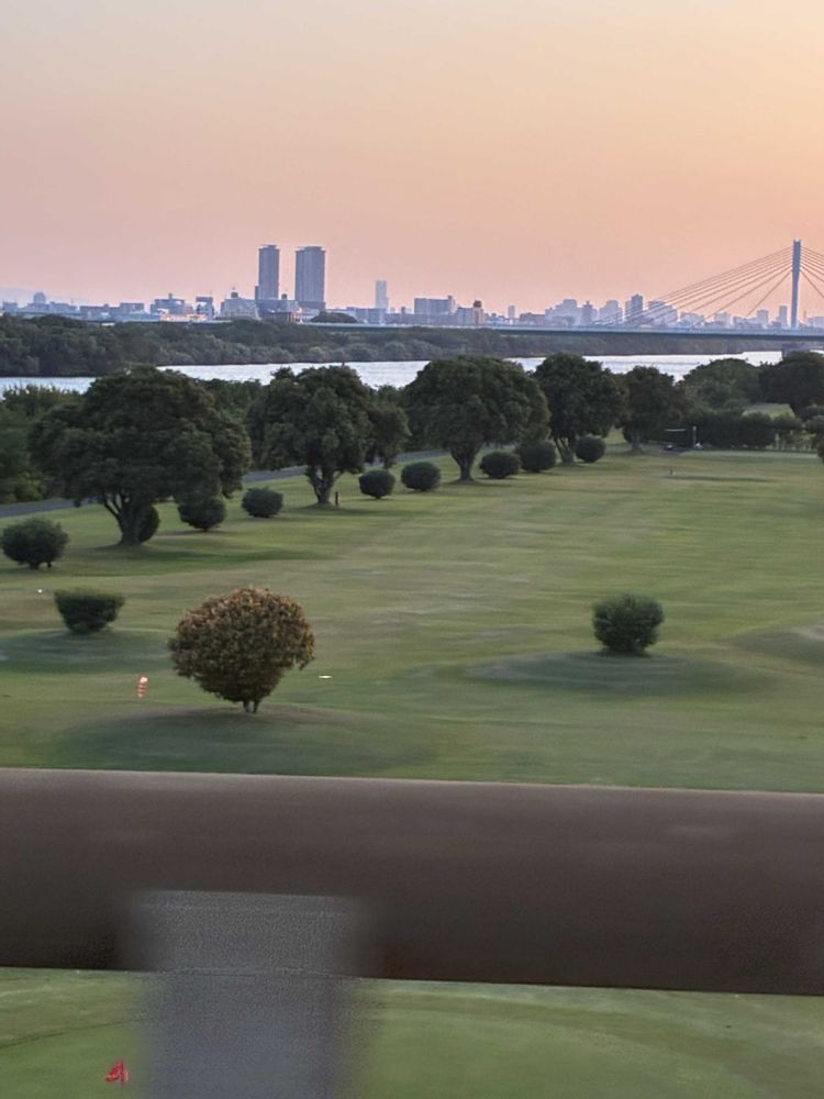 淀川河川敷のゴルフコースが見えます。ナイショ!🏌️♂️⛳️🌞✌️
