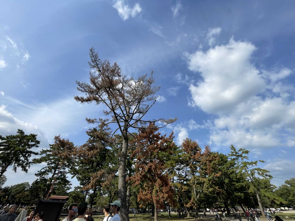 奈良公園で松の立ち枯れが何本も見られました。マツノザイセンチュウか、または猛暑の影響でしょうか?