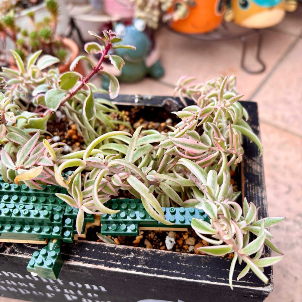 かっこいい木製プランターに前にお迎えしてたトリカラーとすうさんにもらったフクリンマンネンクサを植えました😊