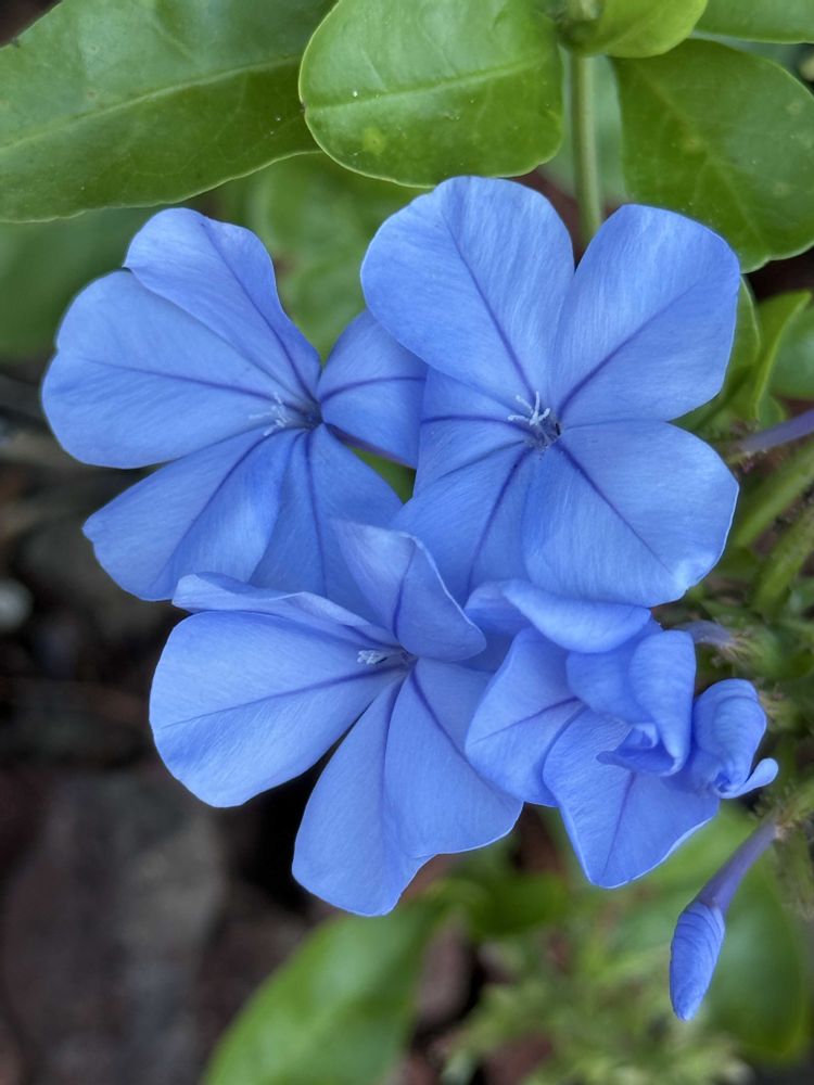 Plumbago auriculata/Plumbago. Plumbaginaceae. Caryophyllales. Magnoliopsida. Tracheophyta Commonly called/Capeplumbago. Cape leadwort. Blue plumbago Native to/South Africa. East Africa(Mozambique) Symbolism/Hope. Serenity. Tranquility. Sinsere Love and Faithfulness. Good fortune *In some African traditions, it is believed to bring good fortune and prosperity. *Genus of 10-15 species *Oblong-spoon-shaped leaves, 1 1/2-3in(4-8cm)long Bears long-tubed, light sky-blue flowers 1 1/2in(4cm)long, from summer to late autumn *The genus name ‘Plumbago’ comes from the Latin word for “lead” (plumbum). The plant was historically believed to be a remedy for lead poisoning and giving it a connection to healing. *Jean-Baptist Lamarck named it “Plumbago auriculata”in 1786. *This flower was introduced to many regions worldwide, especially East Indies. Photographed 11/6 8:41am 2025 Posted 11/7(Friday) 11:44am 2025