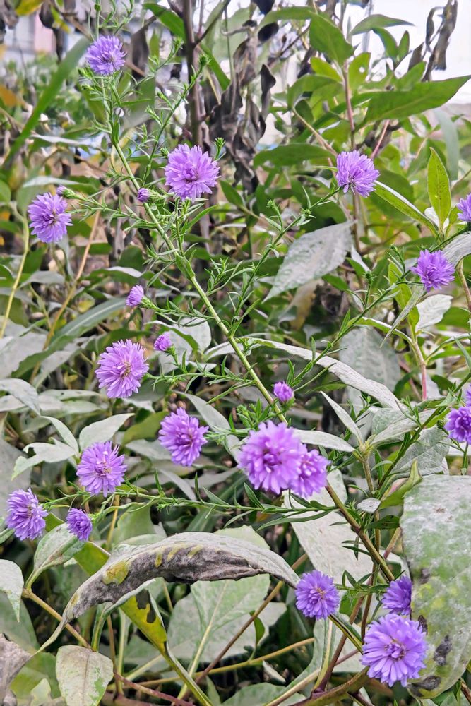 小さなお花のクジャクアスター💜にお散歩ちゃんステキ(✼•ᴗ•⁎)✲*。❀.*・゚