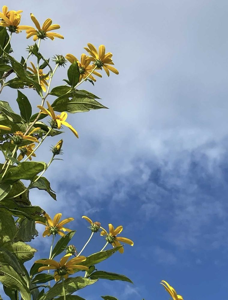 キクイモさんの花は青い空に映えますね。