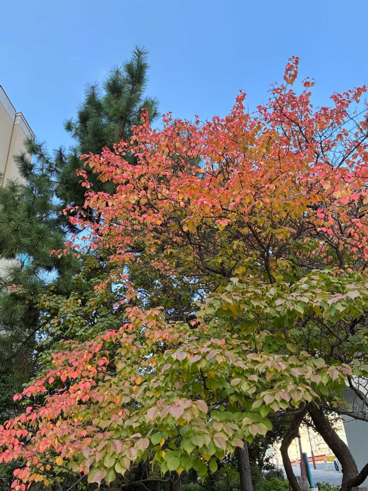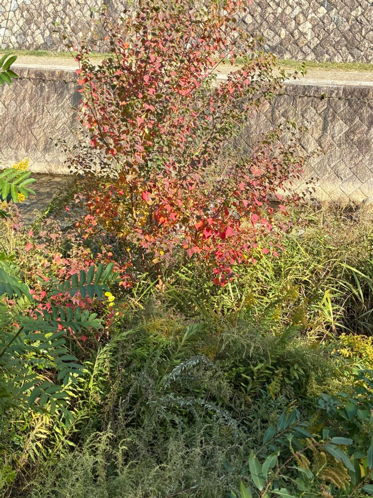 川に下りる前 消防署横の梅の木が紅葉していて綺麗でした。