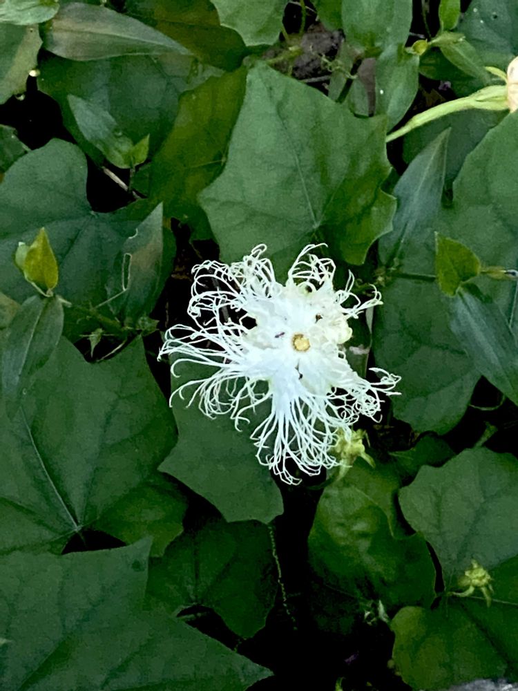 こんな都会にもカラスウリ咲いているんだ、と😲しゃがみ込み🤳