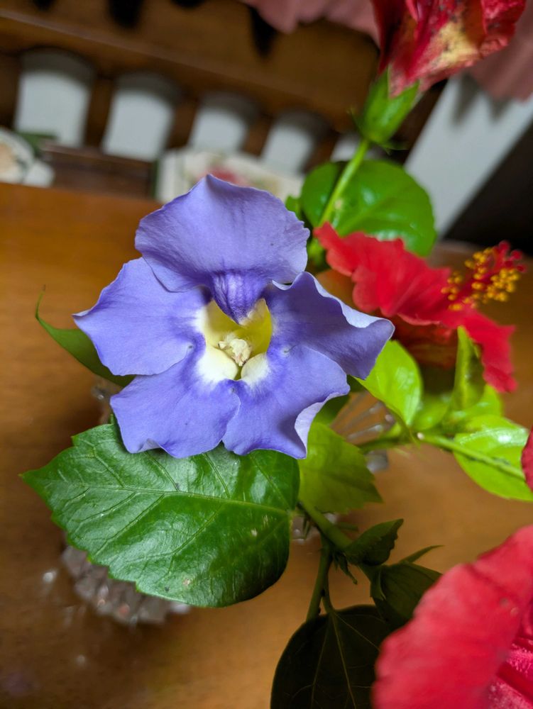 ハイビスカスが一輪枯れて、代わりにベンガルヤハズカズラ